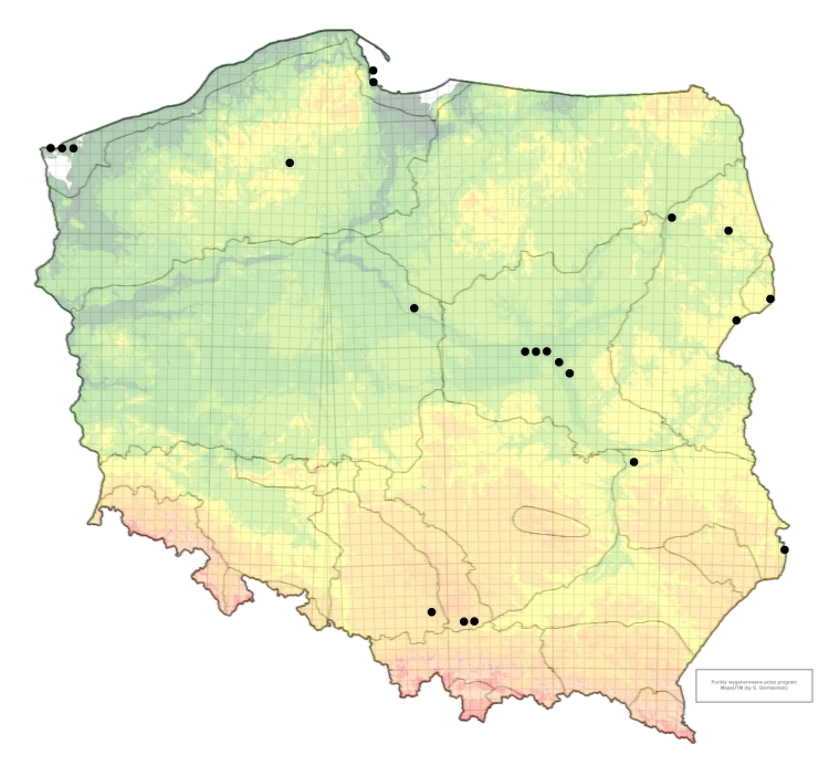 Gugny (FE01, Kupryjanowicz 2005), rez. Budzisk (FE50, Staręga 1995, Staręga 2003a), rez. Jelonka (FD62, Staręga et Szymonowicz 1999)